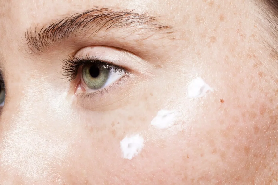 Drittens: Tragen Sie die Creme richtig auf. Nicht auf das Augenlid. Nicht auf die Augenbrauen. Nur auf das Unterlid und den äußeren Augenwinkel. Geben Sie zwei Tropfen pro Auge hinzu. Tragen Sie die Creme mit dem Ringfinger auf – so ist sie am leichtesten und übt keinen Druck aus. Tupfen Sie die Creme auf und verblenden Sie sie sanft.